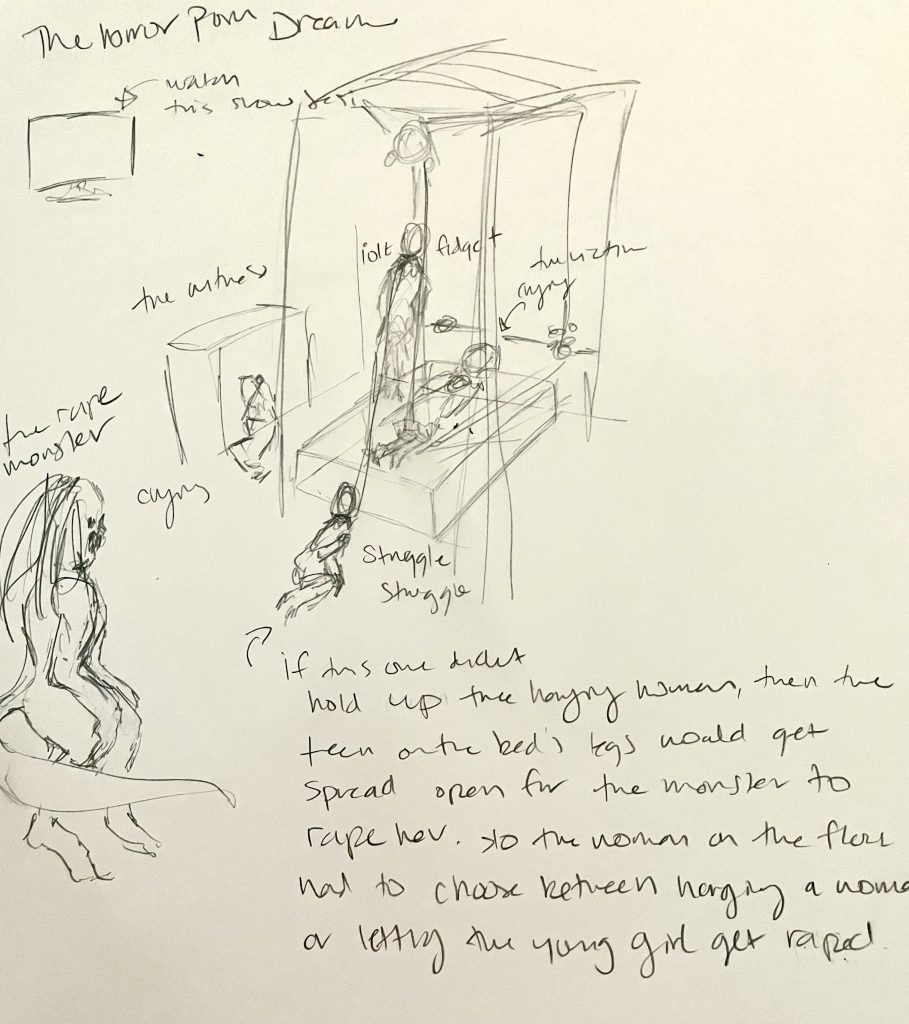 The beast raped the young girl and in this dream and I could feel it, I could hear the young girl’s cries and then I stopped watching because it was too much.