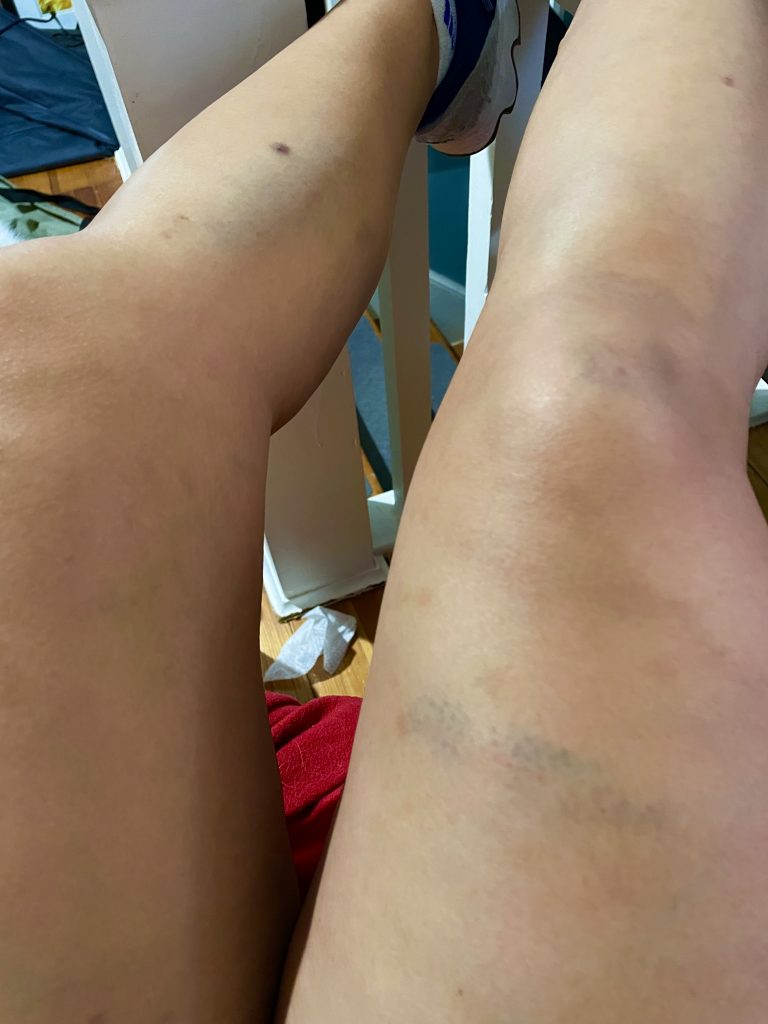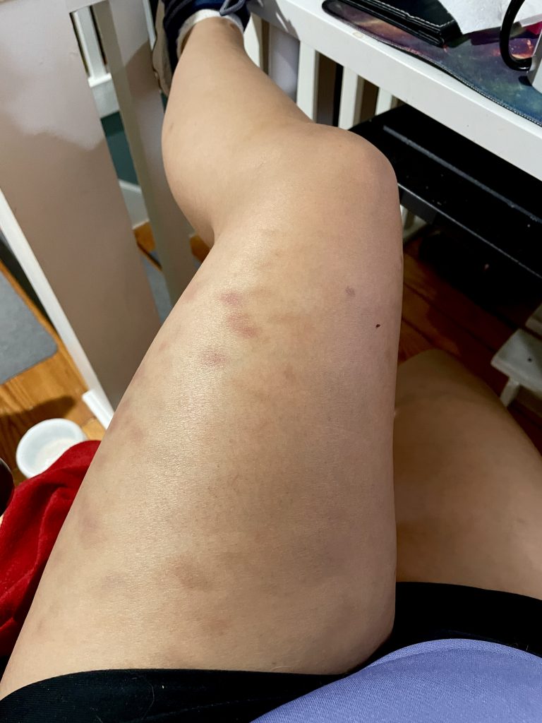 This was a bad attack. After spending 20 min searching for my inhaler, I finally found sweet relief. But then I was exhausted and I looked down at the rapidly forming blue and red bruises all over my legs. I just wanted to sleep.